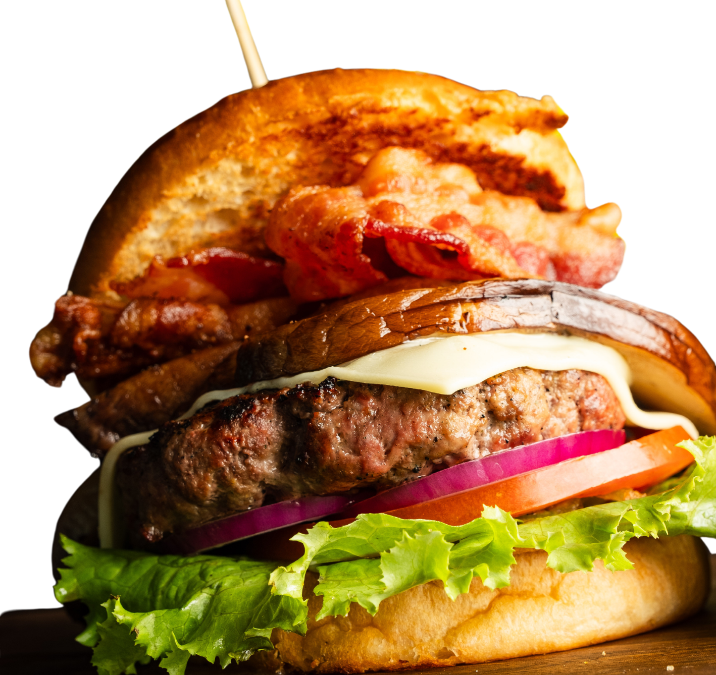 Cheeseburger con tocino, vegetales y Woonkie Sauce. Nada como un tocino en una burger
