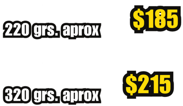 La linea boss se compone de 3 tipos de carne: 150 grs. de res, 120 grs. de pollo y el cerdo varía según la especialidad que escojas, doble queso americano, bbq y cebolla asada.